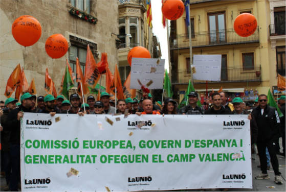 Los agricultores y ganaderos se concentraron ante el Palau de la Generalitat Valenciana, y tras recorrer varias calles, llegaron a la Plaça del Temple (Delegación del Gobierno), donde concluyó la protesta y tuvieron lugar los parlamentos en los que han intervenido el secretario general de LA UNIÓ, Carles Peris y los miembros de la comissió executiva, Isabel Navarro, Daniel Carbonell y Fernando Durà.