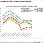 La caída del precio del cereal en Cataluña 2025/26 se está traduciendo en ingresos más bajos por hectárea pese a los buenos rendimientos de la cosecha de 2025. En secano, el recorte de ingresos por la bajada de cotizaciones se estima en unos 320€/ha, y en regadío en unos 615€/ha, mientras los costes de producción [Leer más…]