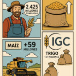 Según el último informe del Consejo Internacional de Cereales (IGC), la producción mundial total de granos (trigo y granos secundarios) para 2025/26 se elevará a 2.425 millones de toneladas, 13 millones más que el mes anterior. Se trata del tercer aumento consecutivo y refleja principalmente mejores rendimientos en trigo y cebada. Con un consumo global [Leer más…]
